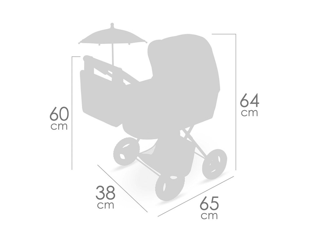 • Rozměry kočárku: 65 × 38 × 64 cm (celková výška kočárku)