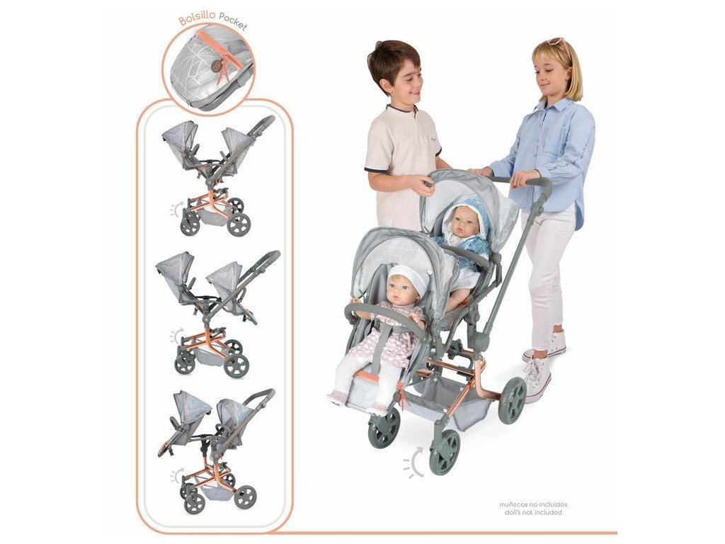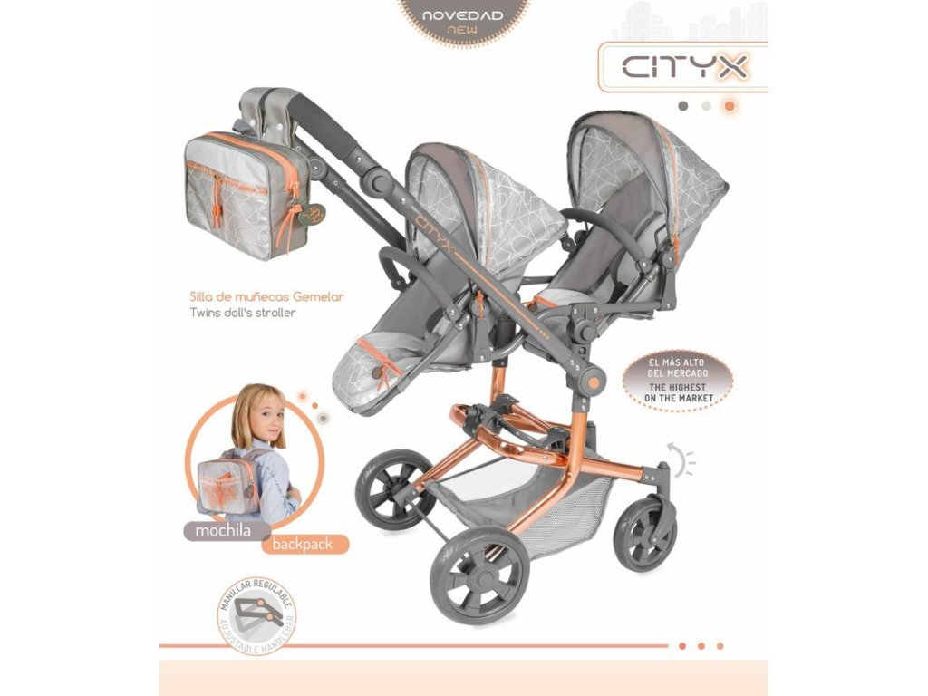 DeCuevas 90877 Skládací kočárek pro dvojčata panenky s batůžkem CITY X - 91 cm