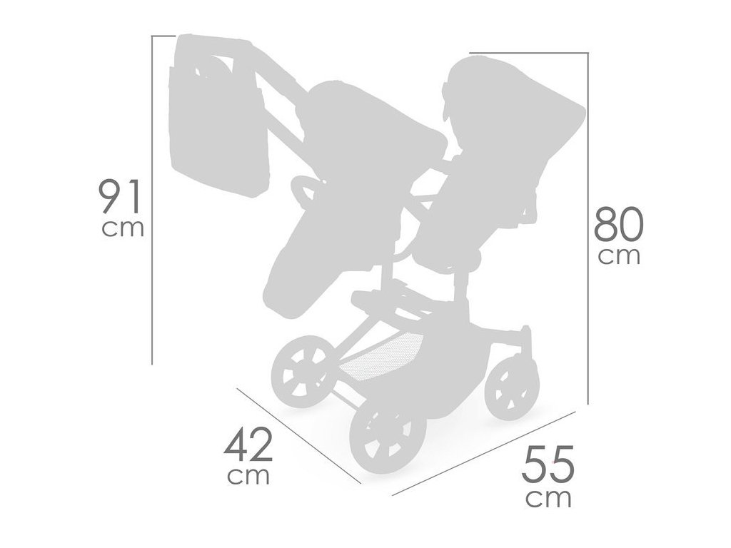 • Rozměry kočárku: 55 × 42 × 91 cm (výška k rukojeti v nejvyšší poloze)