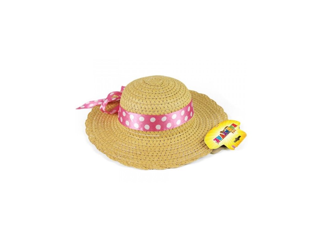 Dětský slaměný klobouk s růžovou stužkou