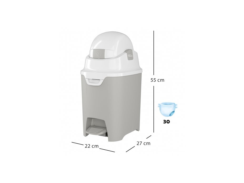 - Hygienické ovládání bez použití rukou : Mějte obě ruce volné pro bezpečnou manipulaci s dítětem pomocí nožního pedálu. Jednoduše stiskněte pedál a vhoďte plenku dovnitř, aniž byste se dotkli kbelíku. Vratný mechanismus zajišťuje nejvyšší hygienický zážitek uložením plenky uvnitř a zabraňuje přenosu bakterií přes ruce.