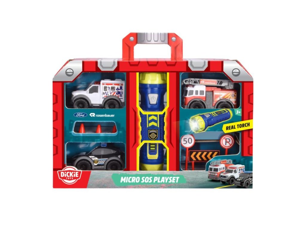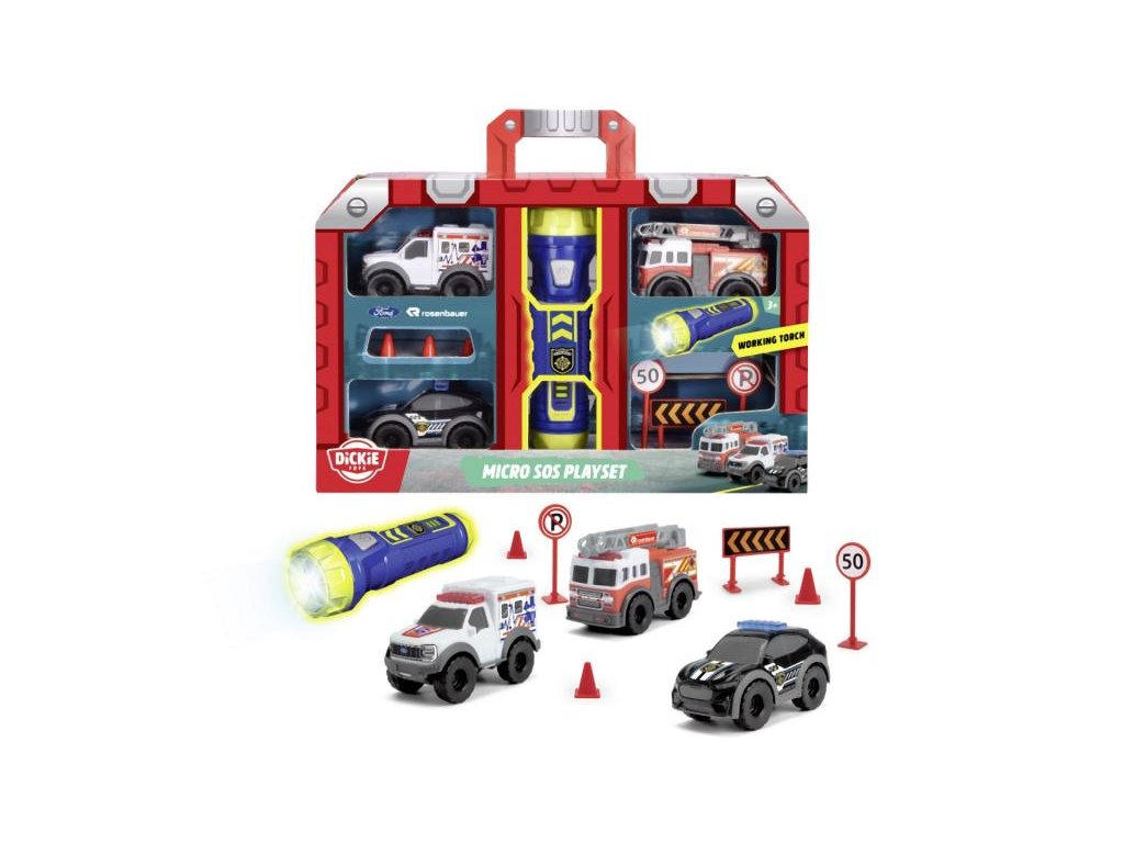 Dickie SOS Mikro Set 3ks auta s baterkou 9 cm
