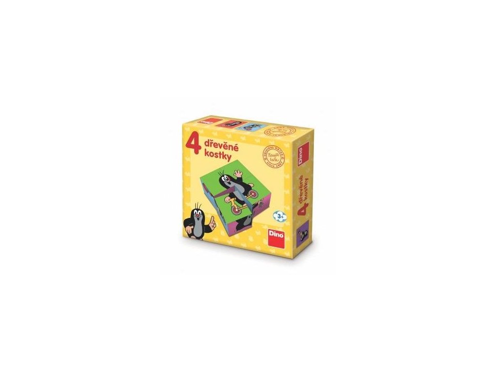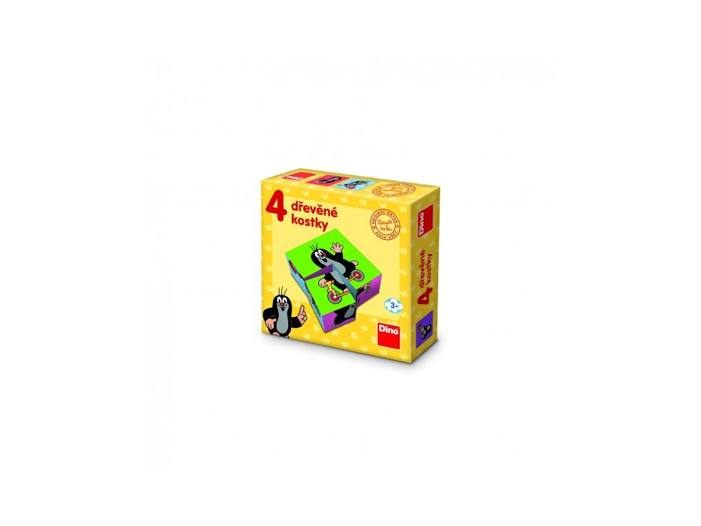 DINO Kostky kubus Krtek dřevo 4 ks v krabičce