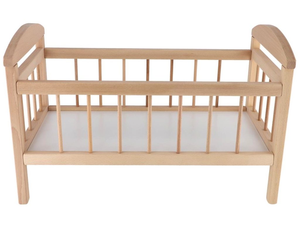 Krásná velká postýlka z kvalitního dřeva určená pro velké panenky. Nyní bude vaše panenka v bezpečí a bude se jí lépe spát!