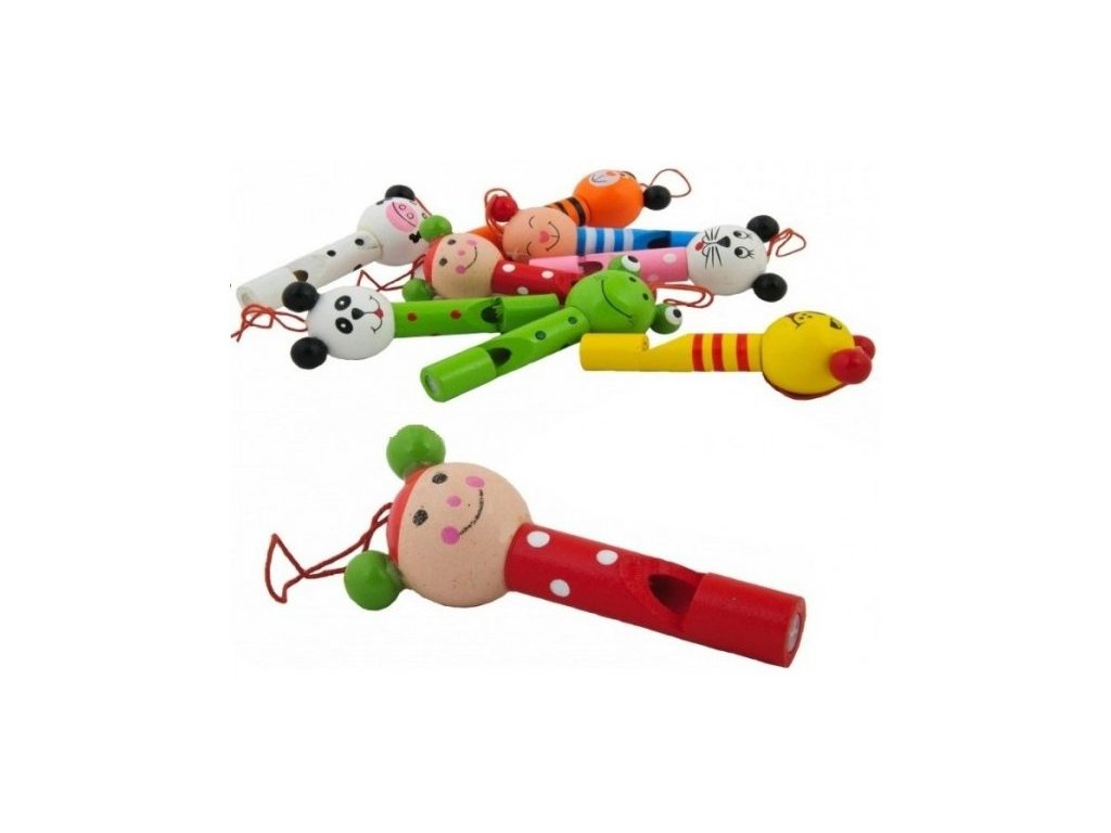 Píšťalka dřevěná 8cm zvířátko barevné