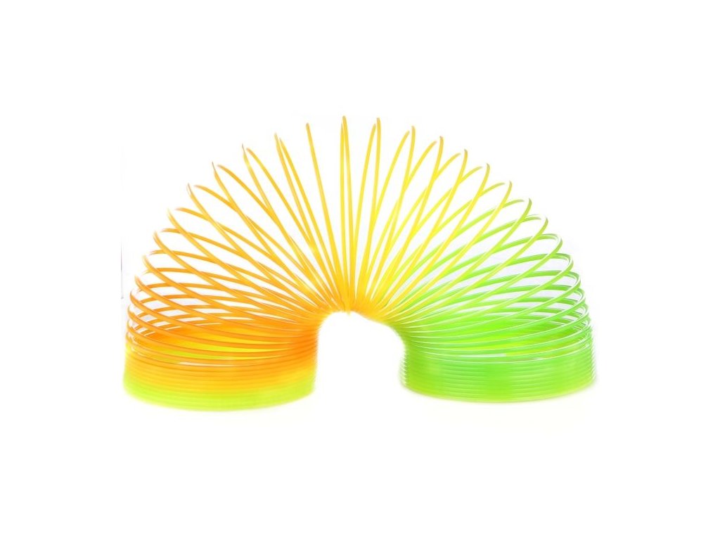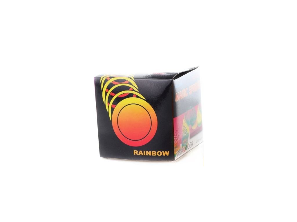 Plastová kouzelná pružina v duhových barvách. Pružina je jako živá, lze ji pustit ze schodů a sama po nich přeskáče, nebo si ji přehupovat z dlaně do dlaně. Barvy duhy dodávají pružině při pohybu zajímavé efekty.