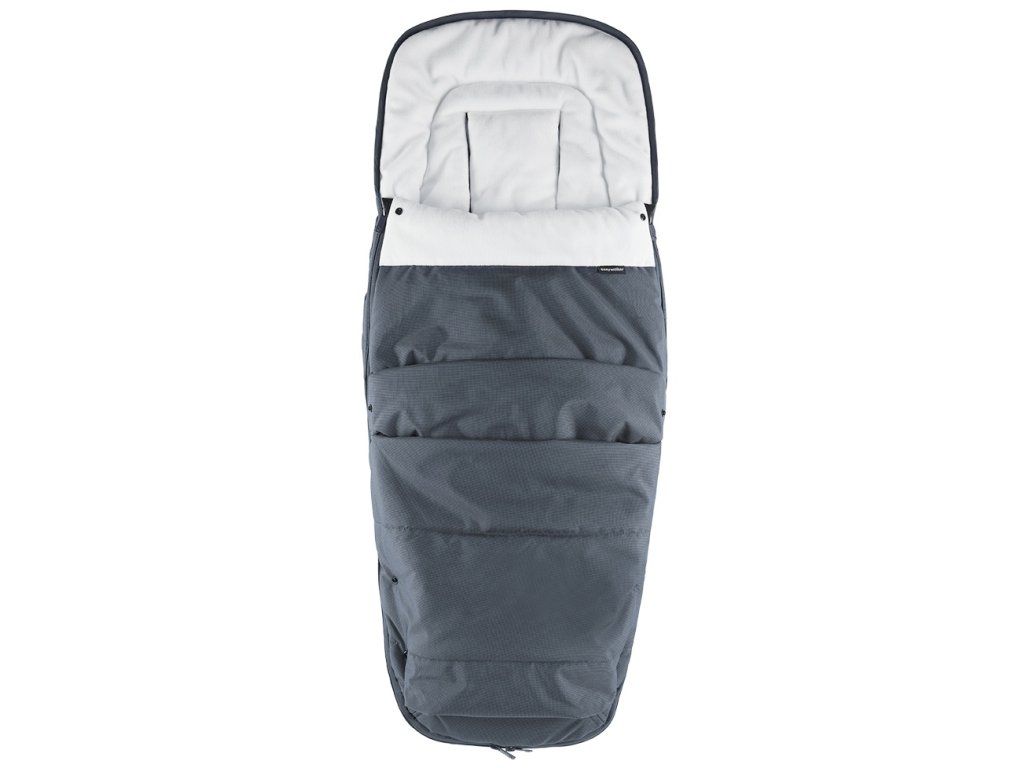 Snadno se připevňuje k sedadlu kočárku pomocí poutek na pásek a druků. Nánožník má zipy na obou stranách, takže dítě snadno vyndáte.
