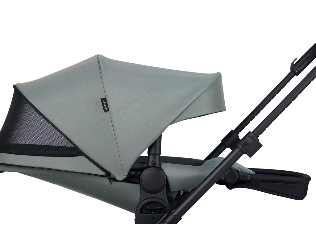 Ať je počasí jakékoli, není třeba se bát. Vaše miminko zůstane ve stínu nebo pěkně v suchu díky extra velké stříšce Harvey, která poskytuje ochranu před sluncem UPF 50 a je vodoodpudivá.