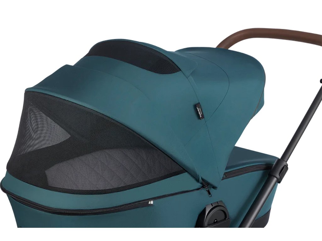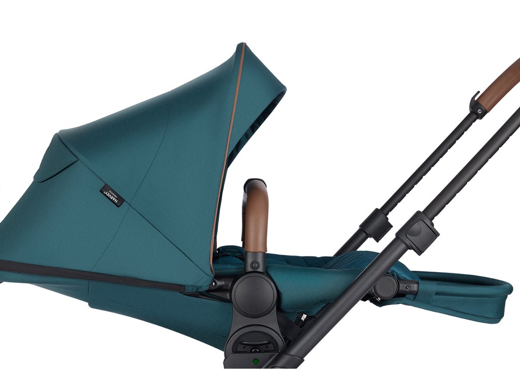 Ať je počasí jakékoli, není třeba se bát. Vaše miminko zůstane ve stínu nebo hezky v suchu díky extra velké stříšce Harvey s okénkem a stylovými koženými detaily, která poskytuje UPF 50 ochranu proti slunci a je vodoodpudivá.