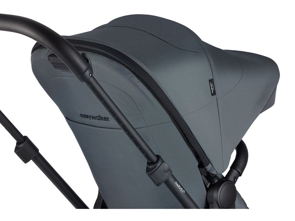 Ať je počasí jakékoli, není třeba se bát. Vaše miminko zůstane ve stínu nebo hezky v suchu díky extra velké stříšce Harvey s okénkem a stylovými koženými detaily, která poskytuje UPF 50 ochranu proti slunci a je vodoodpudivá.