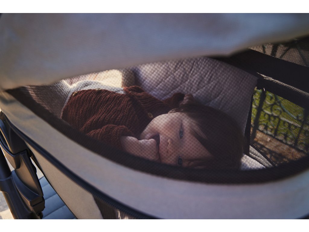 - Zabudovaná plynule nastavitelná maxi-stříška proti slunci - poskytuje dítěti stín a příjemný klid.