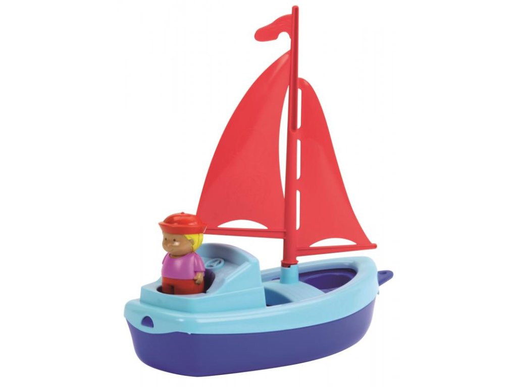 Aktivní hračka do vody pro nejmenší s malou figurkou. Plastová plachetnice je dlouhá 22,5 cm, šířka 10,5 a výška 24,5cm. Na lodičce je otvor pro přivázání šňůrky na tahání.