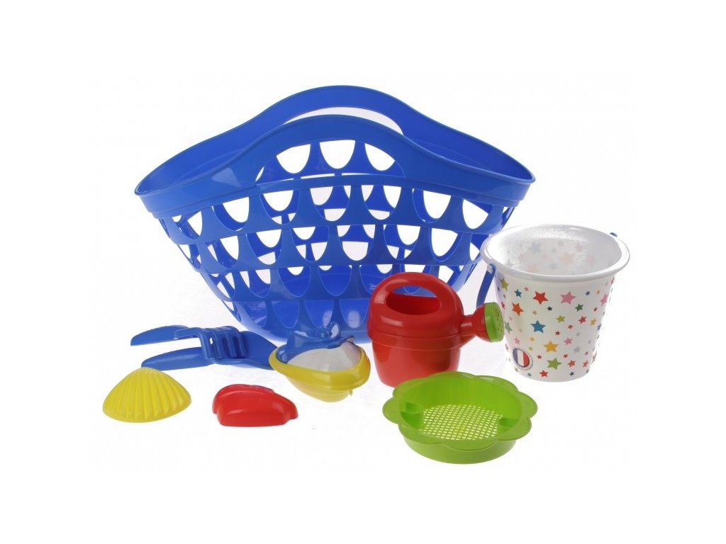 Sada na písek s kyblíkem a konvičkou zabaví na pískovišti nebo na pláži u moře každé malé dítě.