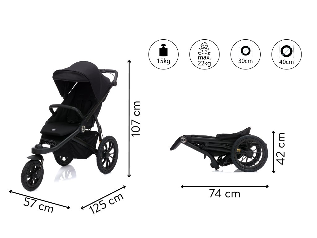Fillikid JOGGER RUN Black melange kočárek trojkolka
