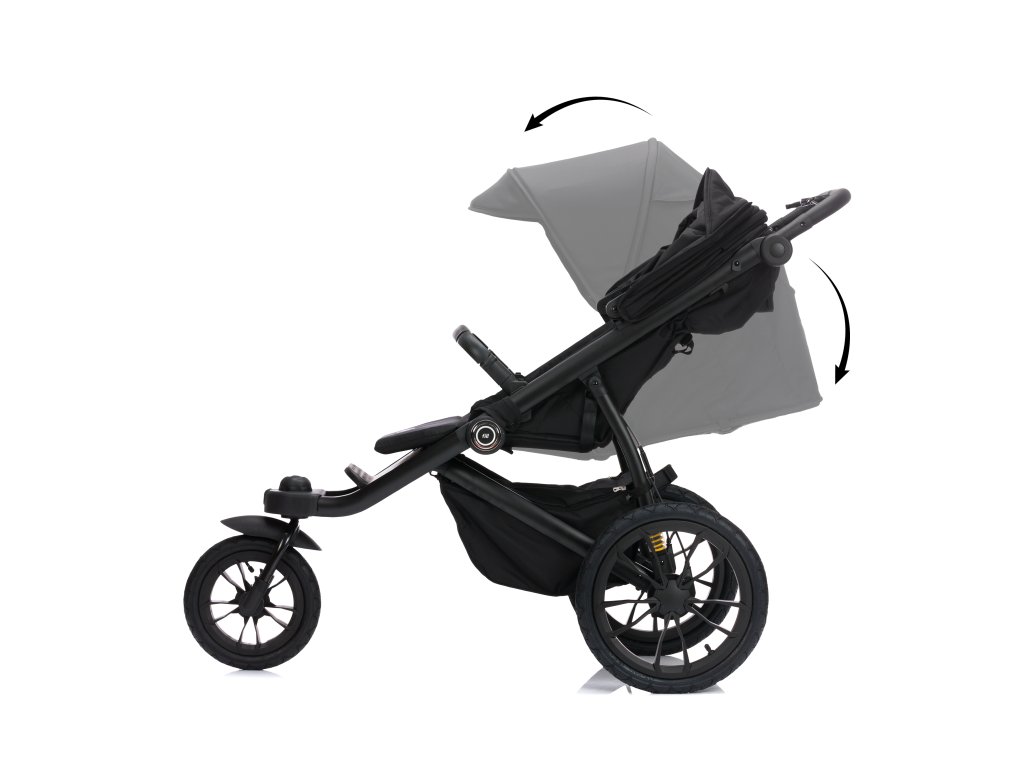 Jogger Run nabízí vašemu dítěti maximální pohodlí za všech okolností díky možnosti nastavení polohy sezení do pohodlného lehu. Vaše dítě si tak může v klidu zdřímnout nebo pozorovat okolní svět. Výškově nastavitelnou rukojeť lze dokonale přizpůsobit výšce rodičů, takže maminka i tatínek mohou pohodlně běhat nebo chodit.