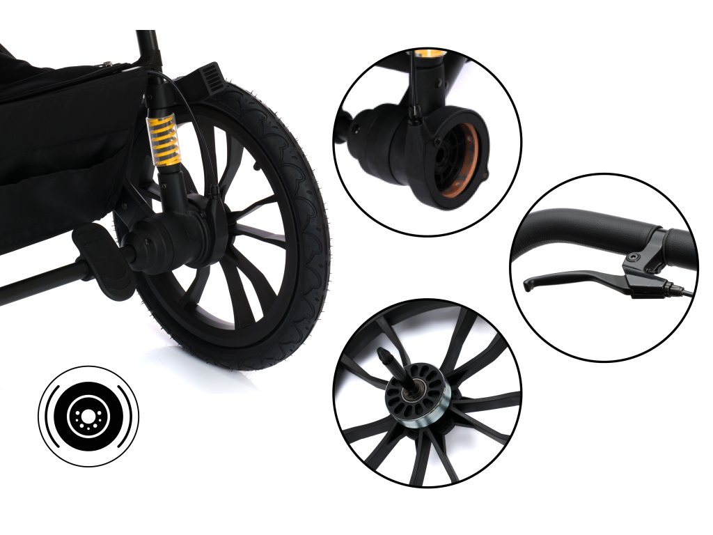 - Brzdy: Speciální vnitřní špalíková brzda a přídavná nožní brzda