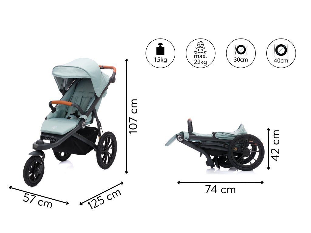 Fillikid JOGGER RUN Sage melange kočárek trojkolka