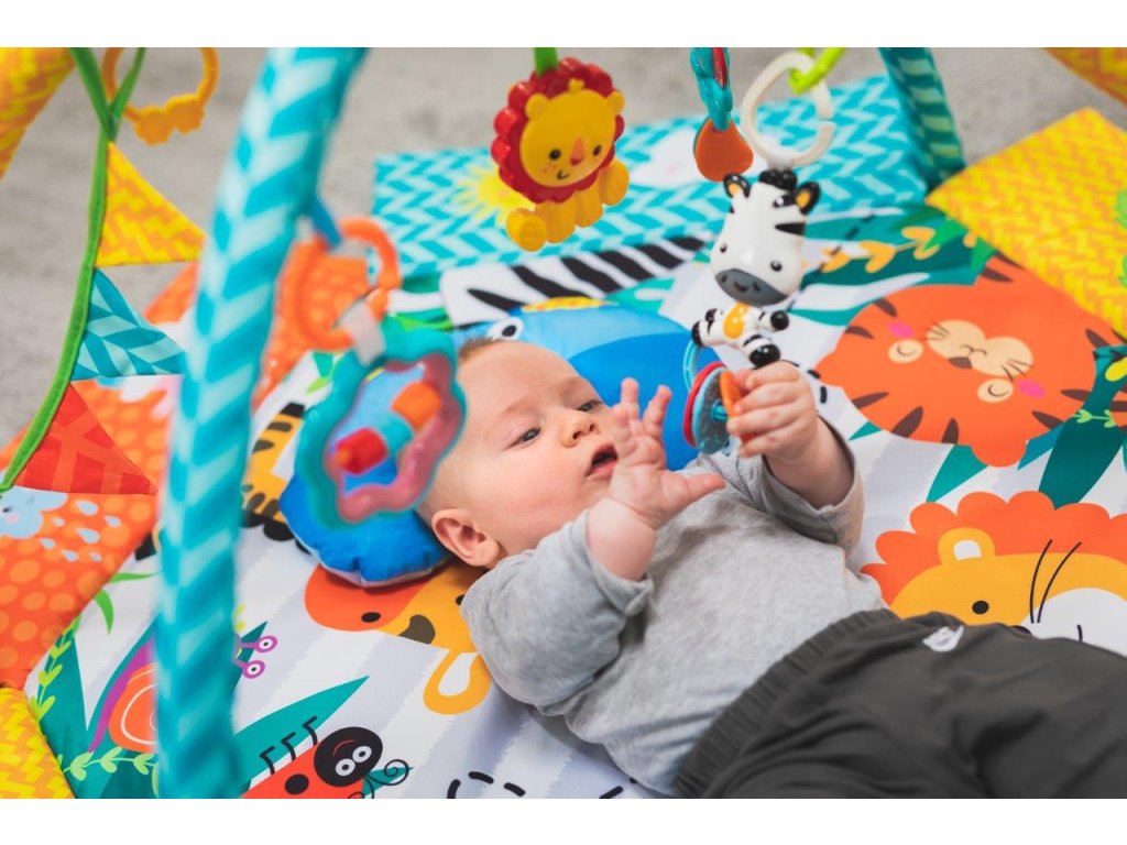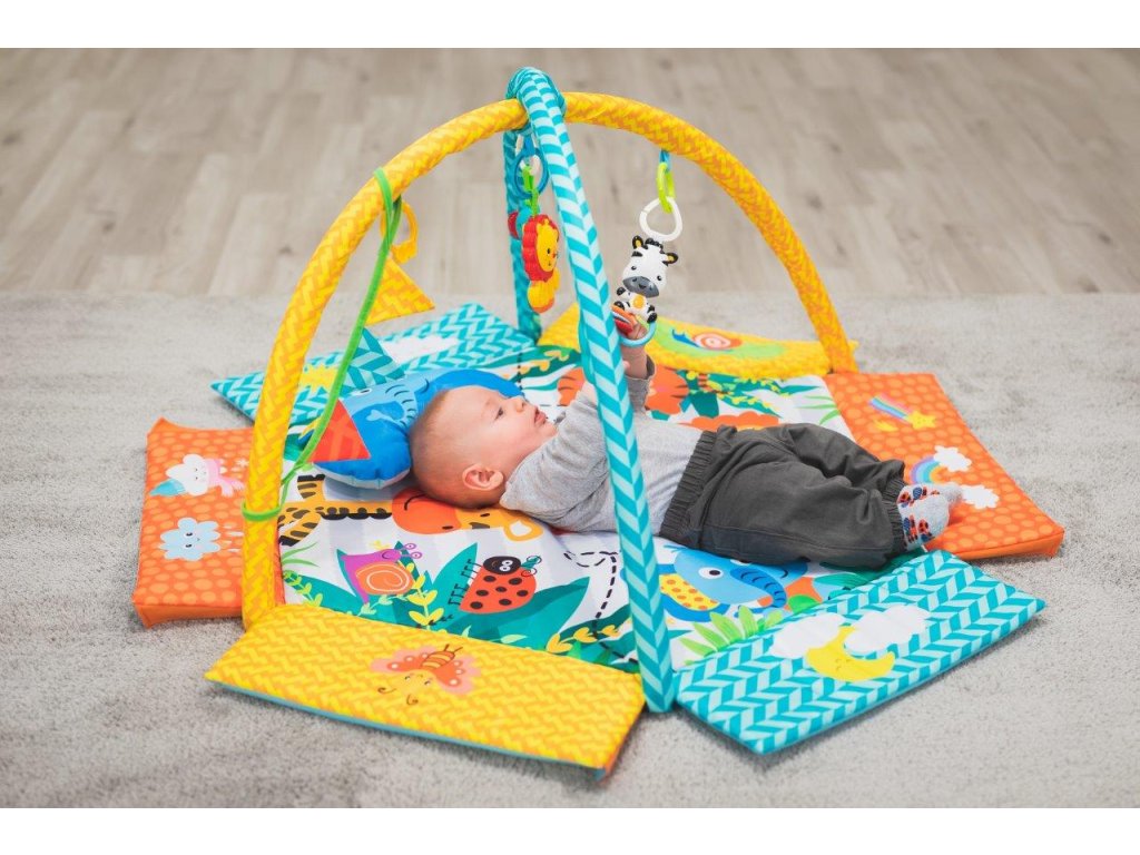dokonalé prostředí pro plazení a hraní. Na druhou stranu, pokud je vaše dítě ještě příliš malé na to, aby se plazilo, můžete ho nechat hrát si s různými hračkami na hracích obloucích v poloze na zádech.