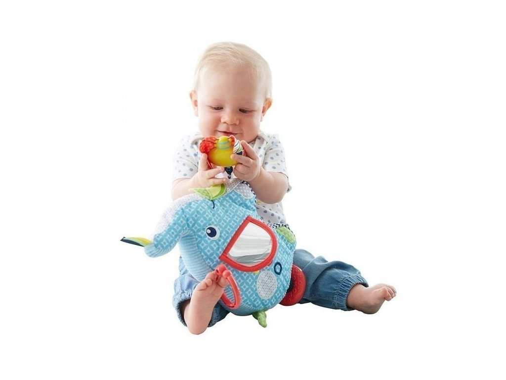Velký měkký slon se stane nerozlučným kamarádem a prvním společníkem vašeho miminka. Hračka je vyrobena z různorodých materiálů, jako je šustivá látka, manšestr či plyš a má na sobě různé záhyby, což vše rozvíjí hmat. Sloník v sobě skrývá spousty překvapení. Když s ním děťátko zatřese, ozývají se zábavné zvuky. V oušku slona najdete zrcátko, díky kterému budou děti nadšeně objevovat samy sebe. K dispozici je také chrastítko nebo barevný motýlek, který pohupuje nohama. Sloníka můžete vzít všude s sebou. Hračka pomáhá dětem rozvíjet smysly a reagovat na nové podněty, jako jsou jasné barvy a vzory. Hmat a jemnou motoriku si děti procvičují při uchopování a prozkoumávání hračky. Příjemný měkký povrch slona udržuje děti v pocitu bezpečí.