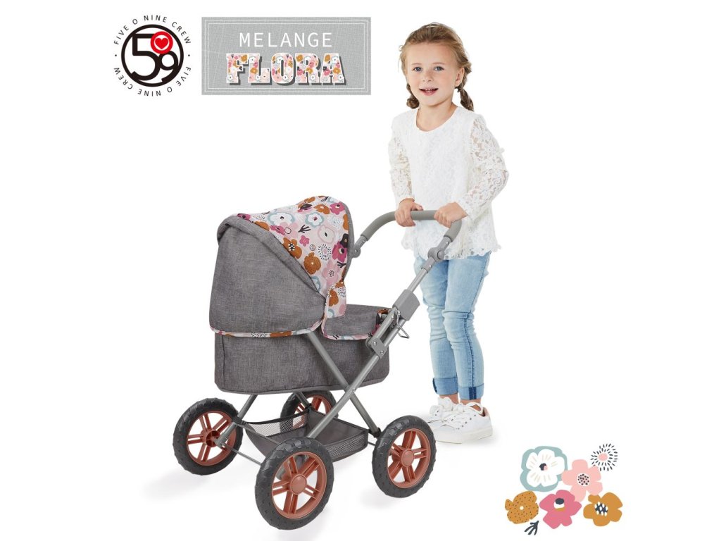 Five O Nine Crew Kočárek pro panenky s taškou Melange FLORA grey 67cm