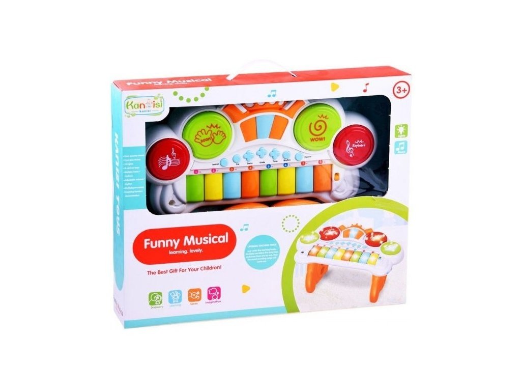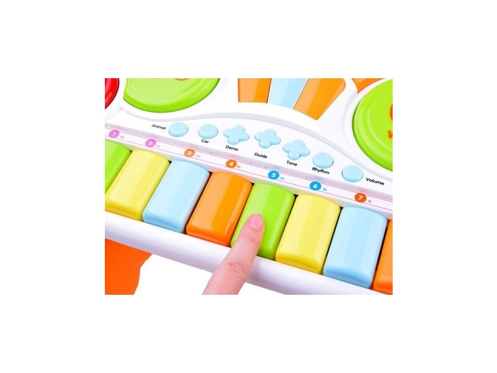 Dětské piánko na baterie. Piánko vydává zvuky a svítí.