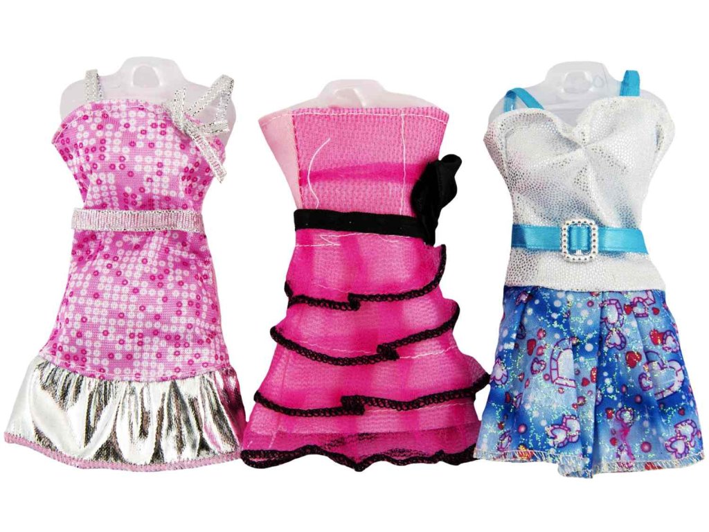 I panenky občas potřebují převléknout. Vyberte si z několika druhů oblečků v mnoha barevných odstínech a různých střihových variantách. Určeno pro panenky 25-30 cm (velikost panenel Steffi, barbie a jiné.