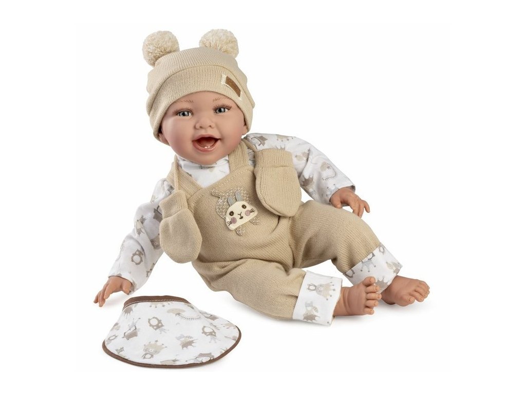 Panenka miminko bez zvuku s měkkým látkovým tělem. Ruce a nohy jsou k tělu přichyceny kloubem. Miminko je polohovací a může i sedět.