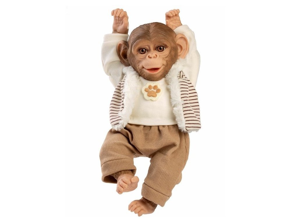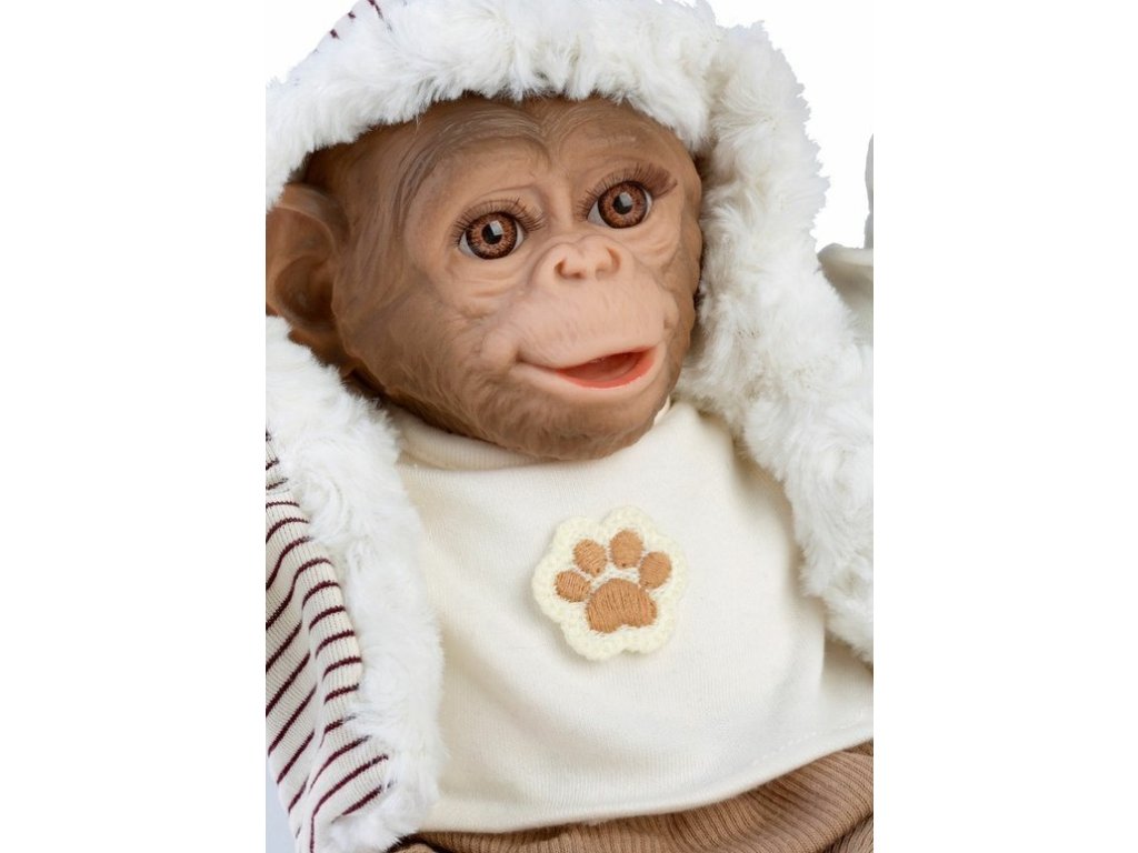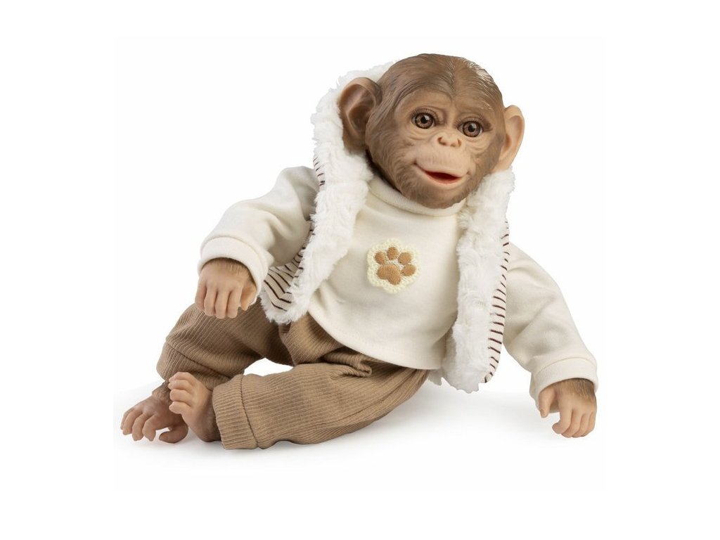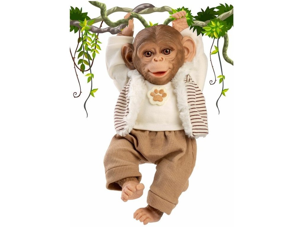 Veselé a roztomilé opičí miminko bez zvuku s měkkým látkovým tělem. Hlava a končetiny jsou vyrobené z kvalitního vinylu, na kterém je zachycen věrohodně každý detail tohoto zvířecího mláďátka včetně různých záhybů, kromě pohlaví. Vhodná Opička - panenka i pro chlapce.