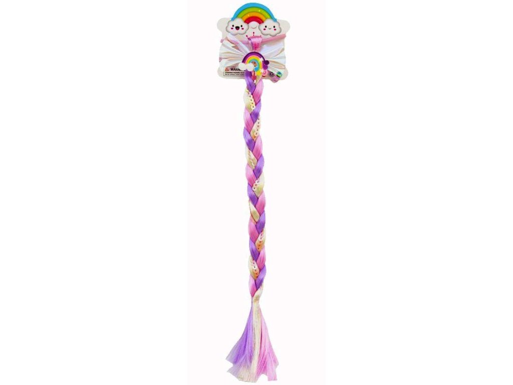 Snad každá holčička si přeje mít barevné dlouhé vlasy. Dopřejte jí to díky barevnému duhovému příčesku, který je připevněn na gumičce do vlasů. Barevný copánek s flitry je dlouhý cca 38cm. Příčesek může být také vhodným doplňkem ke karnevalovému kostýmu.