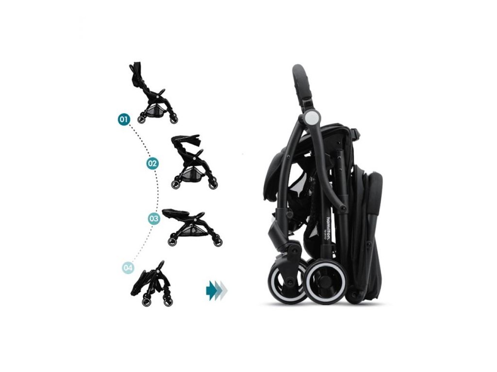 Nový sportovní kočárek od Hamiltonu je v německu navržený kočárek s automatickým skládacím systémem MagicFold. Je prvním svého druhu, který nepoužívá žádné baterie, dráty, nabíječky ani elektřinu. Místo toho obsahuje nápady německého inženýra, který vášnivě usnadňuje život rodičům poté, co byl svědkem péče manželky o jejich prvorozeného syna.
