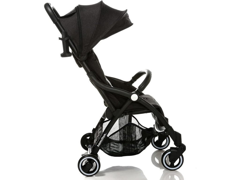Kočárek Hamilton má funkce, které zajišťují optimalizovaný komfort, pohodlí a bezpečnost. Mezi tyto vlastnosti patří sklopné opěradlo zad, kožené rukojeti a madlo před dítětem, systém 5-bodového bezpečnostního postroje, nastavitelná opěrka nohou, prostorný úložný koš.