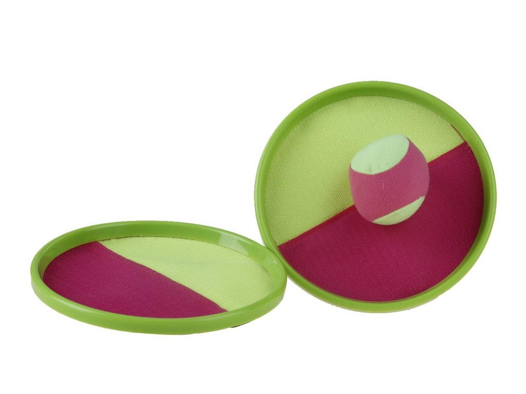 Plastový catchball. Sada obsahuje 2 lapače na suchý zip a 2 míčky.