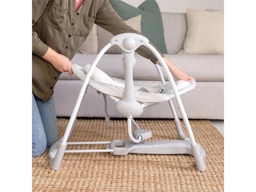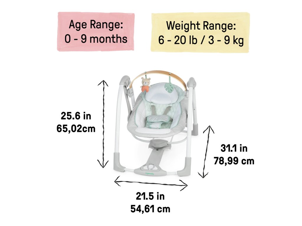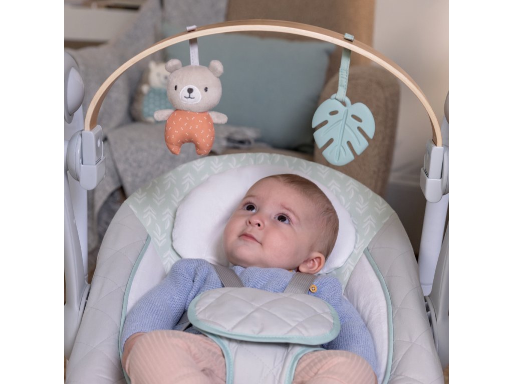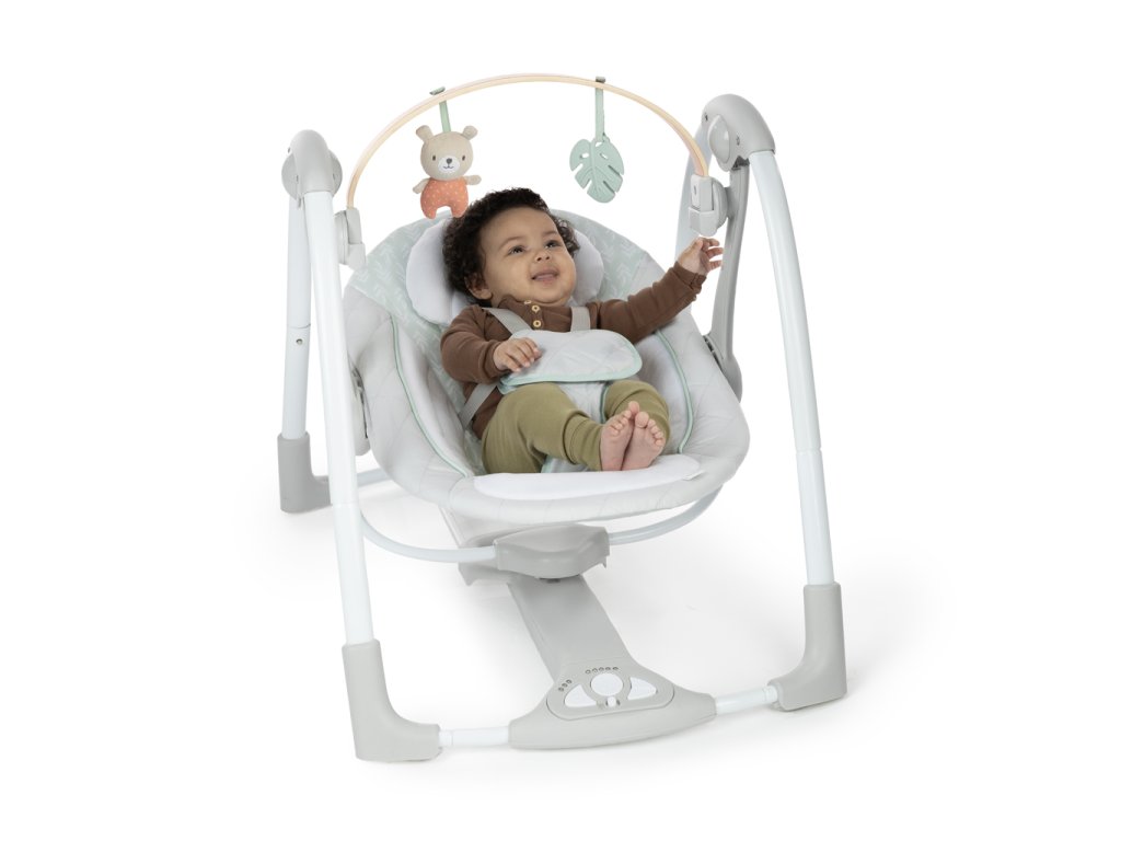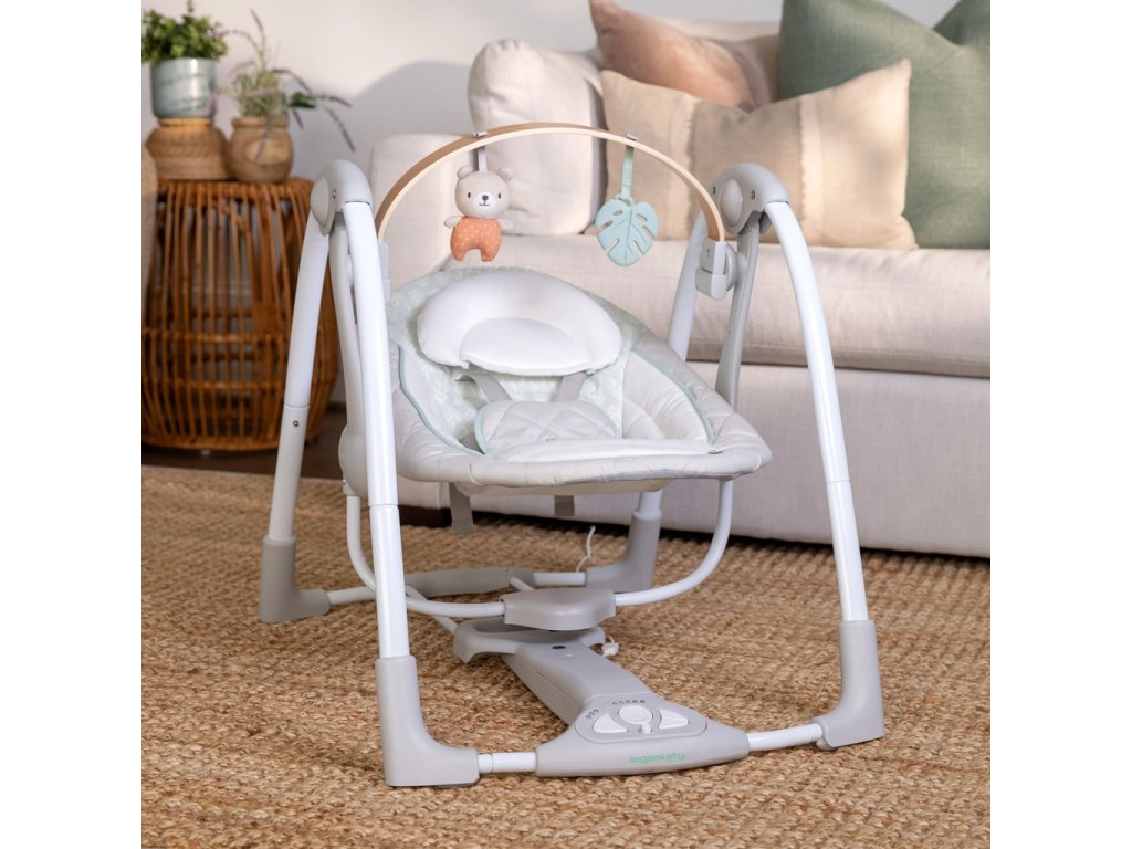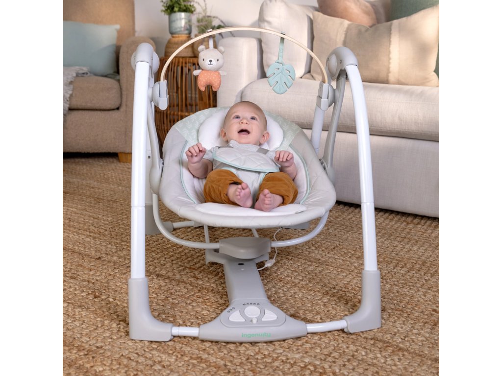 Zabavte miminko a zároveň vylepšete svůj stylový interiér s přenosnou houpačkou Ingenuity Cozy Spot Swing'n Go! Odnímatelná hrazdička s hračkami – vyrobená ze dřeva z udržitelného lesa – dodává houpačce luxusní nádech. Hrazdu lze otáčet a jednoduše odstranit, čímž se usnadňuje vkládání a vyjímání dítěte. Výkonná houpačka nabízí 5 rychlostí s pokročilou technologií TrueSpeed, která snímá hmotnost dítěte a s časovačem a tichým motorem WhisperQuiet. Houpačka je napájena přes USB kabel (součást balení). Pohodlí je prvořadé, proto je nastavitelná opěrka hlavy a potah sedáku vyrobený z hebkého materiálu boa a jiných ultra jemných látek. Potah a opěrku hlavy lze snadno odejmout a vyprat. Dvě interaktivní hračky – oblíbený medvídek Nate z kolekce Ingenuity a silikonový lístek bez BPA – poskytují vizuální a hmatové podněty ke hraní. Hračky jsou odnímatelné a dají se vzít s sebou i na cesty. Dítě zabaví i hudba – houpačka přehrává 8 melodií a 3 jemné zvuky přírody s nastavitelnou hlasitostí pro pohodlí rodičů. Kompaktní design SlimFold umožňuje jednoduché skladování. Vlastnosti - Zabavte miminko a doplňte domácnost elegantním kouskem - Odnímatelná a otočná hrazda s hračkami z udržitelného dřeva - 5 rychlostí s technologií TrueSpeed ??a tichým motorem WhisperQuiet, napájeno přes USB kabel - Dvě interaktivní hračky: medvídek Nate a silikonový lístek bez BPA - odnímatelné na hraní na cestách - 8 melodií a 3 přírodní zvuky s nastavitelnou hlasitostí - Pohodlné sedátko s měkkým potahem a nastavitelnou opěrkou hlavy - odnímatelné pro snadné čištění - Jednoduché skladování - 5-bodový bezpečnostní pás pro maximální zabezpečení - Složení materiálu 53 % kov, 32 % plast, 15 % dřevo - Věkové rozpětí uživatele 0 – 9 měsíců - Hmotnostní rozpětí uživatele (kg) 3 – 9 kg - Rozměry po sestavení: 65,02 cm (V) x 54,61 cm (Š) x 78,99 cm (D). Důležité: Před předáním výrobku dítěti odstraňte veškerý obalový materiál a upevňovací prvky. Obal uschovejte pro budoucí použití. Obsahuje důležité informace. Jen pro použití v rámci jedné rodiny. Adresa dodavatele: KIDS2 EUROPE BV 5 Keizersgracht 287, 1016 ED Amsterdam, Netherlands; +31 20 241 0934.