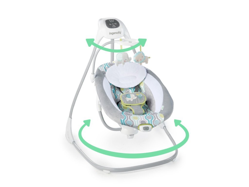 Luxusní velká houpačka s množstvím funkcí vám zjednoduší a zpříjemní den, jelikož bez problémů uklidní a zabaví děťátko. Tato automatická dětská houpačka zvládne téměř tolik úkolů jako vy. Houpačka obsahuje kolotoč se 2 plyšovými hračkami a miminka se rádi natáhnou za plyšovým. Díky 2 polohám naklonění, jemným detailům a měkkým tkaninám se miminko může houpat v příjemném pohodlí.Sedadlo lze otáčet o 180 stupňů, abyste měli lepší výhled na své děťátko a dítě se může houpat ve 3 různých směrech.Lehký rám má kolečka a lehce ovladatelnou rukojeť, díky kterým lze tuto houpačku plné velikosti snadno přenášet z místnosti do místnosti.Na ovládacím panelu GentleTouch si můžete vybírat mezi uklidňujícími vibracemi, 8 melodiemi, 3 zvuků přírody a bílého šumu.Technologie WhisperQuiet umožňuje dítěti houpat se v tichu. chvil bez použití rukou, během kterých bude miminko relaxovat ve vaší blízkosti.I vy můžete klidně odpočívá s vědomím, že vibrace se vypnou za 30 minut a houpačka má časovač na 30, 45 nebo 60 minut a automatické vypnutí po 2 hodinách. Hudba se vypne po 20 minutách a obsahuje samozřejmě také ovládání hlasitosti. Technologie TrueSpeed udržuje 6 stálých rychlostí. Když se věci trochu zašpiní, podložka sedáku je odnímatelná a můžete ji vyprat v pračce. Roztomilý neutrální design se hodí do každé domácnosti a je vhodný pro holčičku i chlapce. Přiložený USB kabel pohání pohyb houpačky a hudbu, zatímco 1 C baterie pohání vibrační jednotku (síťový adaptér a baterie nejsou součástí balení). Baterie pro vibrační jednotku se nachází v základně houpačky v samostatném prostoru a kryt lze snadno odstranit 1 šroubem.