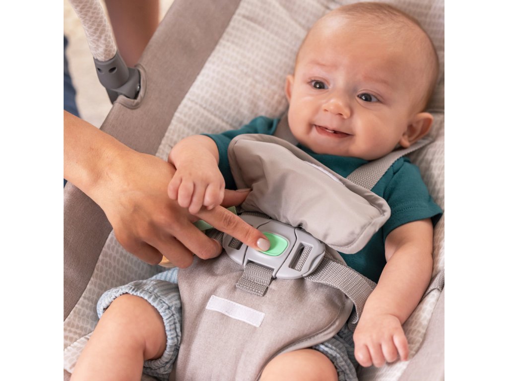 Když ani láhev, ani hlazení bříška, ani oblíbená deka nezaberou… je čas na Keep InMotion automatické houpací lehátko. Toto moderní masážní lehátko je navrženo tak, aby uklidnilo, potěšilo a zabavilo vaše miminko – i v těch nejnáročnějších chvílích. Lehátko nabízí 2 rychlosti houpání, které napodobují jemné pohyby rodičů v náručí. Pomocí dálkového ovládání si jednoduše nastavíte houpání, melodie či vibrace. Díky dvojité možnosti sklonu naleznete ideální polohu pro maximální komfort miminka. Ovládání je intuitivní díky technologii GentleTouch™, kterou hravě zvládnou rodiče, prarodiče i pečovatelé. Vaše dítě se může pobavit s odnímatelnou hrazdičkou, na které visí plyšový balón a dřevěný kroužek se štítky na zkoumání. Moderní design s jemnými tkaninami a prošívaným středem skvěle zapadne do každého interiéru. Navíc lze snadno složit, uložit nebo přenést v přiložené cestové tašce. Vlastnosti: - 2 rychlosti houpání ovladatelné dálkovým ovládáním (s možností připnutí na rám) - 2 polohy sklopení pro pohodlí miminka - Utišující vibrace a melodie s nastavitelnou hlasitostí - Intuitivní ovládání GentleTouch™ pro všechny pečovatele - Odnímatelná hrazdička se 2 hračkami – plyšový balón a dřevěný kroužek se štítky - Moderní design – minimalistický rám, tkané materiály a měkký prošívaný střed - Možnost složení a přenášení v praktické tašce - Pratelný potah pro snadné čištění - Složení materiálu: 58 % kov, 28 % plast, 14 % textil - Věkové rozpětí: 0 – 6 měsíců - Rozměry po složení (cm): 54,0 (výška) × 42,0 (šířka) × 76,0 (délka) Upozornění: Výrobek musí být smontován dospělou osobou. Přestaňte používat lehátko, když se dítě začne pokoušet posadit nebo dosáhne hmotnosti 9 kg – podle toho, co nastane dříve. Nikdy nenechávejte dítě spát v tomto výrobku. Důležité: Před použitím odstraňte veškerý obal a upevňovací prvky. Tento obal si uschovejte pro budoucí použití – obsahuje důležité informace. Výrobek je určen pouze k používání v rámci jedné domácnosti. V rámci neustálého vývoje produkty průběžně vylepšujeme a aktualizujeme. Adresa dodavatele: KIDS2 EUROPE BV 5 Keizersgracht 287, 1016 ED Amsterdam, Netherlands; +31 20 241 0934.