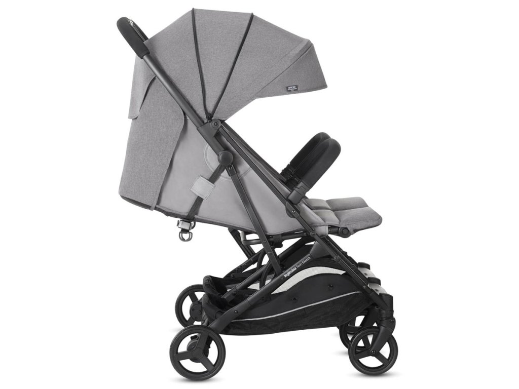 Lehký a kompaktní kočárek pro dvojčata v šedé barvě, dobře jej využijete také pro věkově blízké sourozence. Vhodný již od narození.