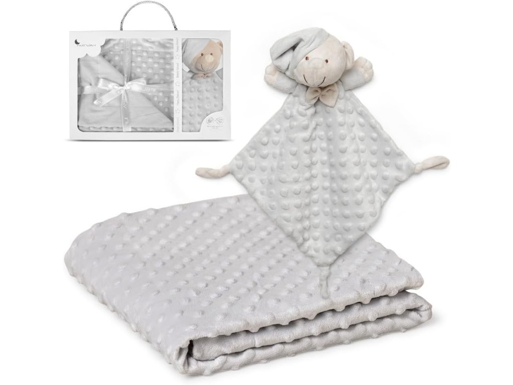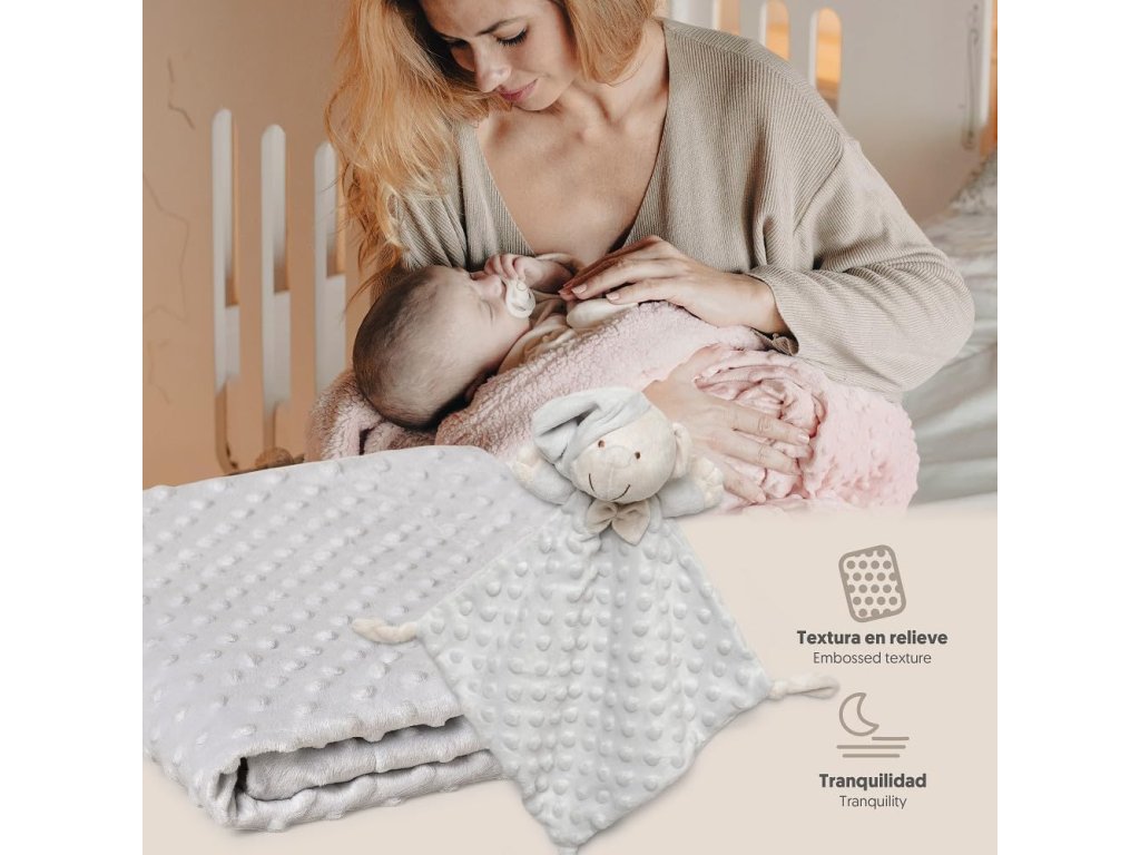 Krásná dárková sada, která se skládá z deky s bublinkovým reliéfem a plyšového muchláčka Dou-dou, perfektní dárek pro miminko.