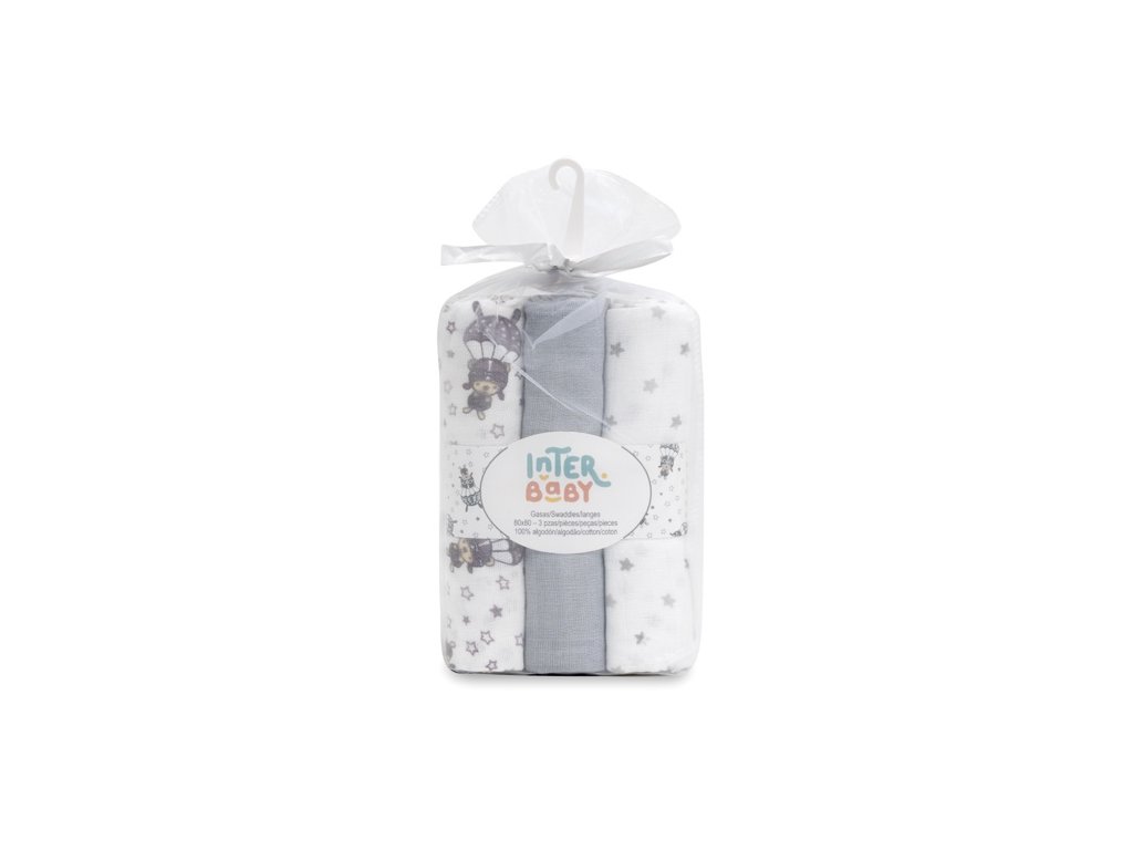 INTERBABY PLENKA padák 3 kusy 80x80 cm- bílo/šedá