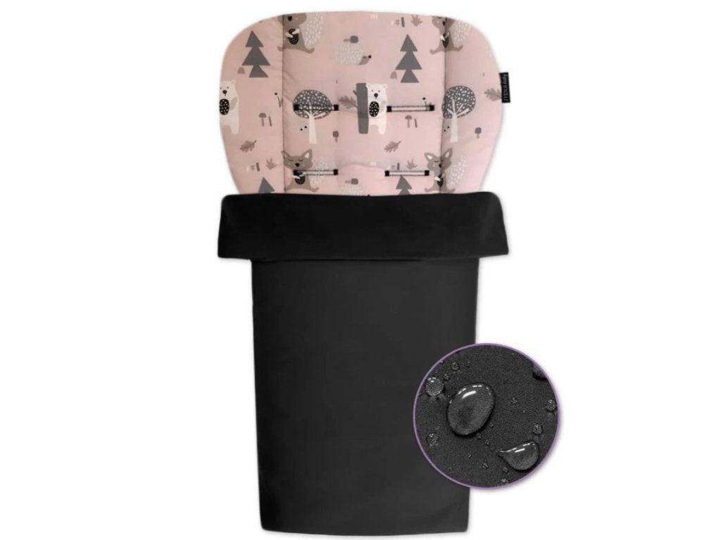 IVEMABABY Podložka do kočárku XXL+softshel nánožník ZVÍŘÁTKA světle růžová