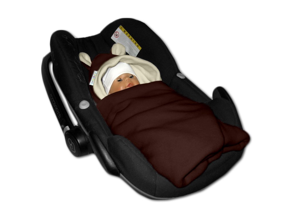IVEMABABY Zavinovačka BABY fleace s oušky 75x75 cm - Hnědá/krémová přírodní