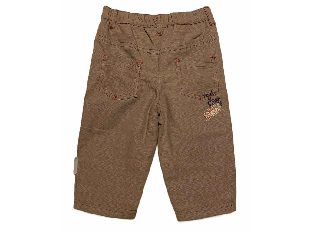 Krásné a praktické zateplené kalhoty pro podzimní i zimní měsíce. Kalhotky jsou vybavené předními i zadními kapsami. Jsou v hnědé barvě, červeně prošívané. V pase na gumu. Praktické do školky i pro klasické nošení. Dvojitý bavlněný materiál.