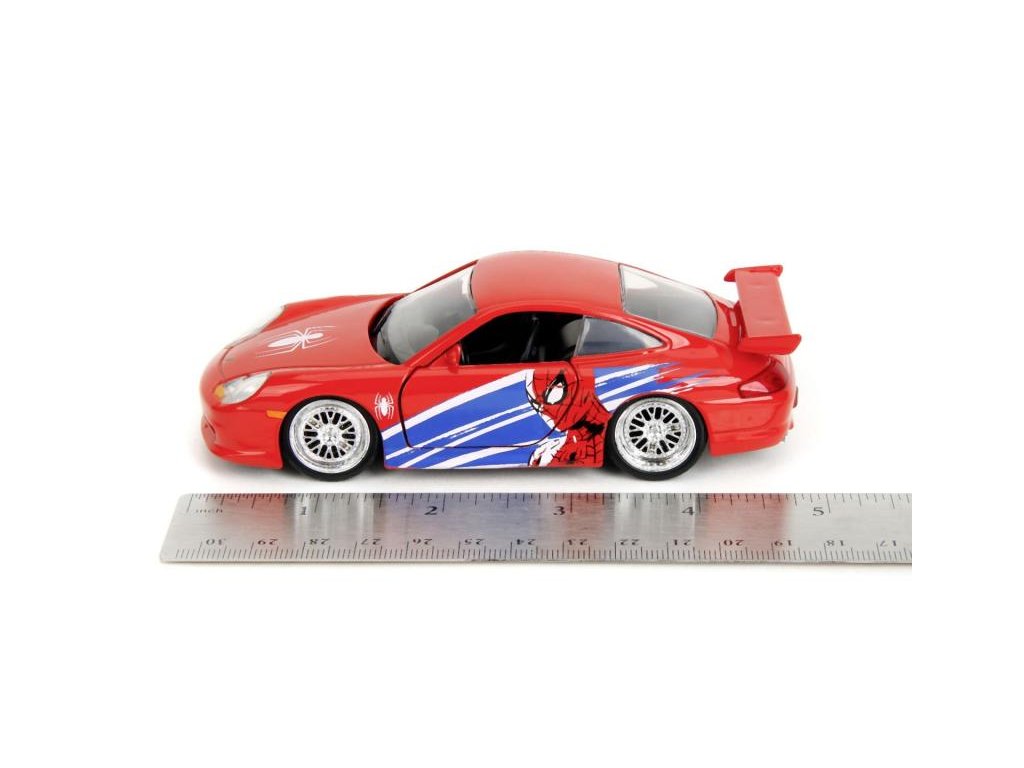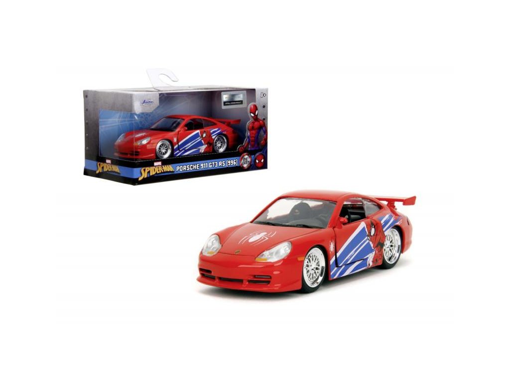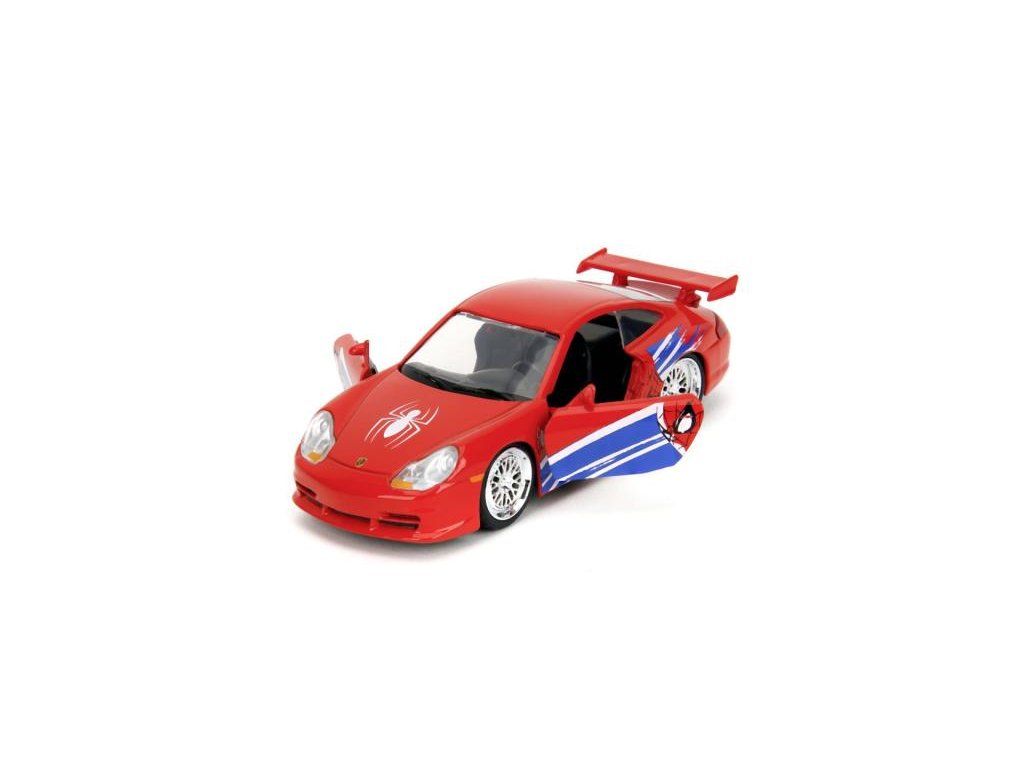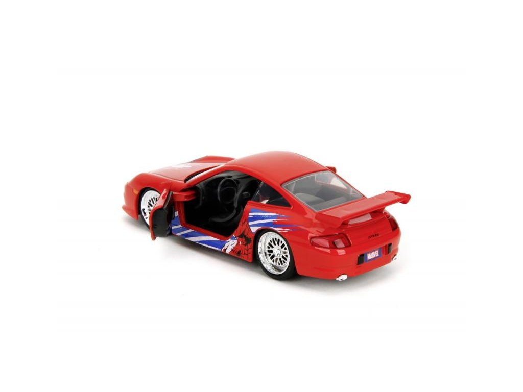 Kovový model auta Porsche 911 GT3 RS Spiderman 1:32, na volnoběh, otevírací dveře.
