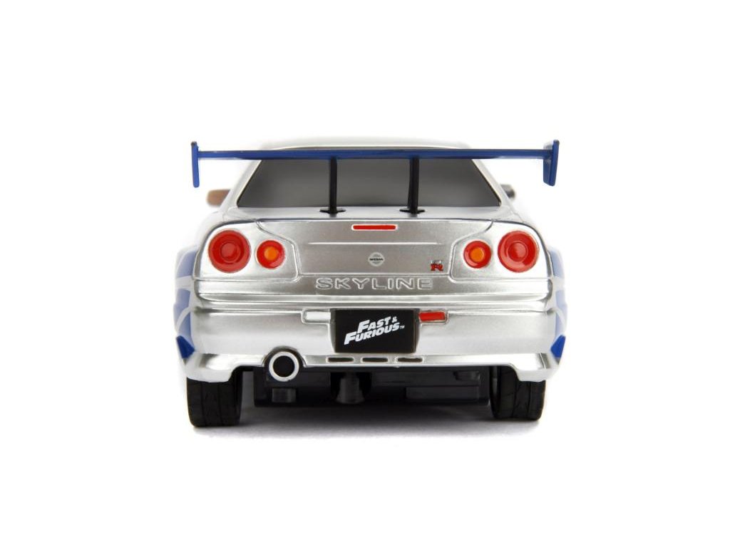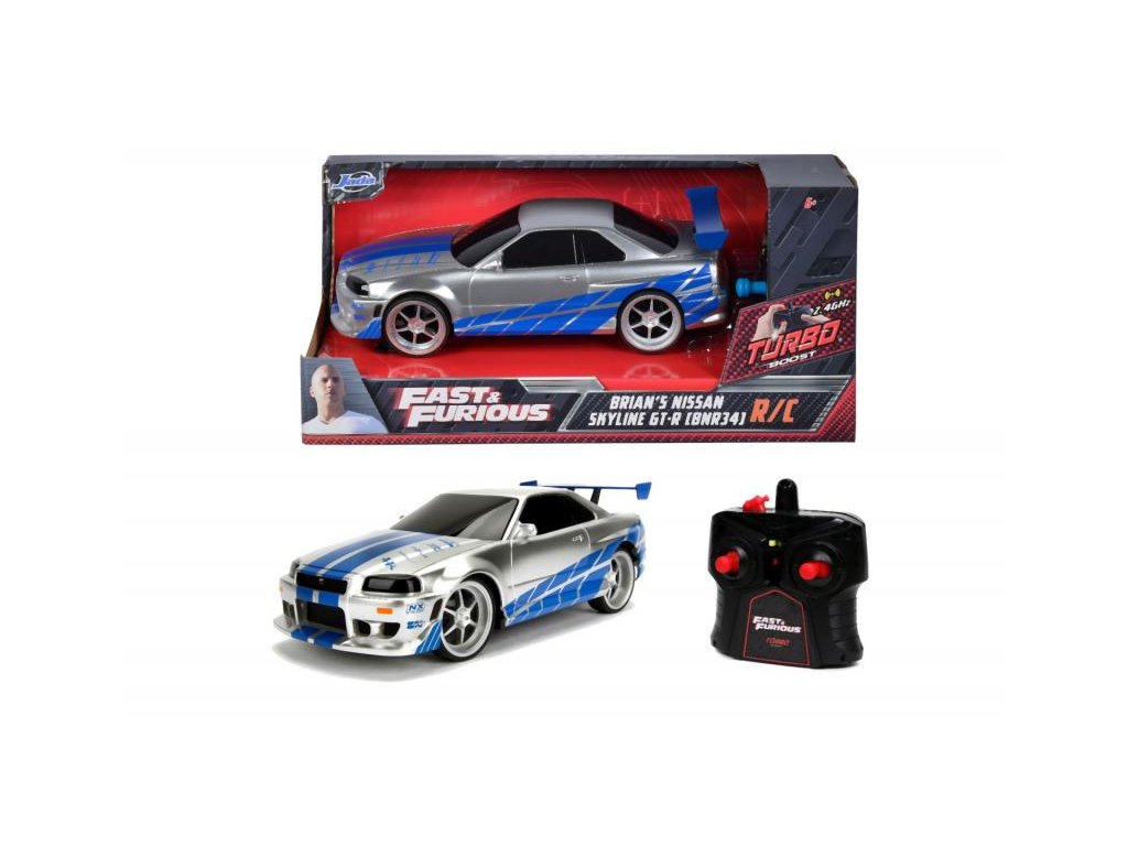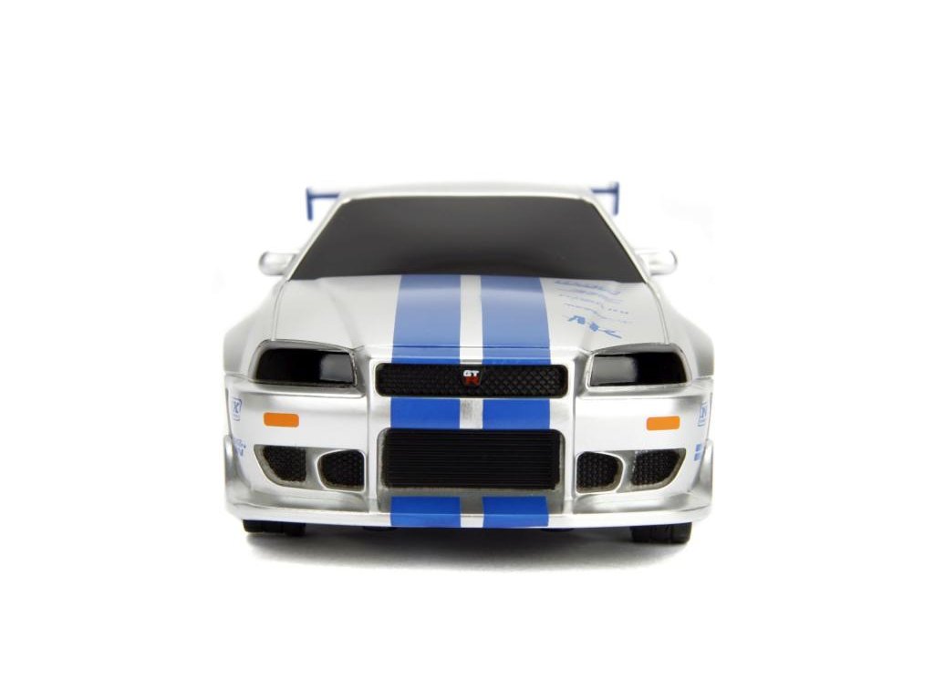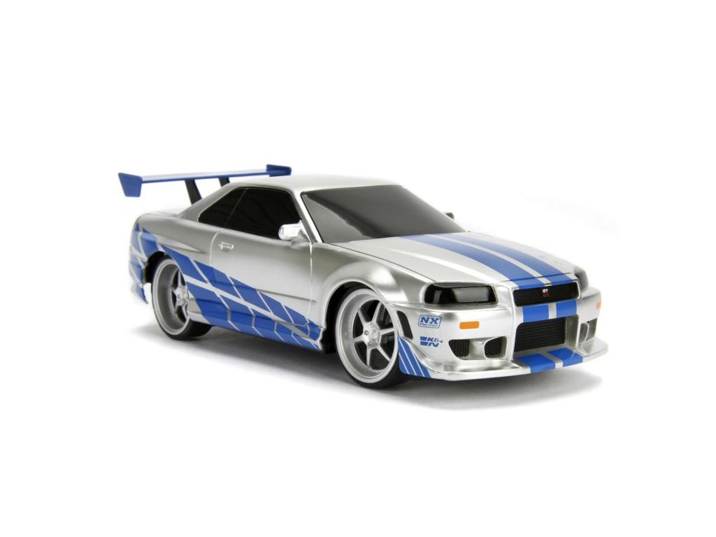 Brianovo auto Nissan Skyline GT-R (BNR34) na dálkové ovládání z akčního filmu Rychle a zběsile. 2 kanály (jezdí vpřed, vzad, vlevo a vpravo). Frekvence 2,4 GHz. Turbo funkce.