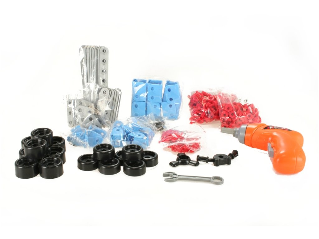Stavebnice s vrtačkou obsahuje 286 plastových dílů pro malé montéry. Vrtačka na baterie 2 baterie AA (nejsou součástí). Rozměry balení cca 41 x 29 x 6 cm. Věk 6+