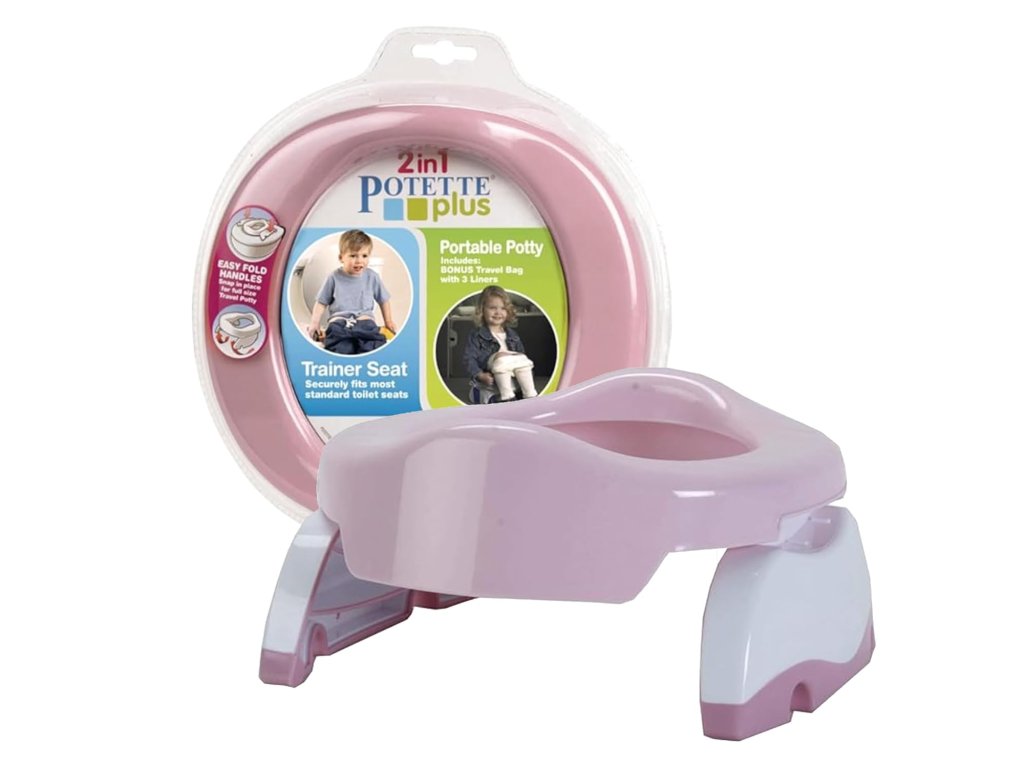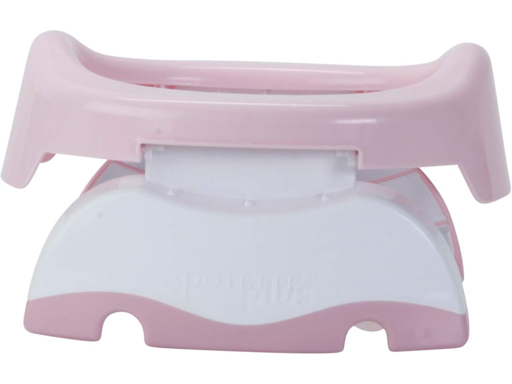 Cestovní nočník a redukce na WC Potette Plus Pastel je vynikající doplněk pro všechny děti a zejména holčičky od 15 měsíců. Přenosný nočník oceníte zejména při cestování s dítětem, na procházkách nebo v případě, že není k dispozici toaleta. Je to výborný prostředek, jak naučit dítě samostatně používat toaletu. Nočník pro děti je vyhotoven v originální růžovo-bílé barevné kombinaci, takže se zalíbí zejména holčičkám. Balení obsahuje také 3 vyměnitelné sáčky s absorpční vložkou a praktickou cestovní tašku, kterou ocení každý rodič.