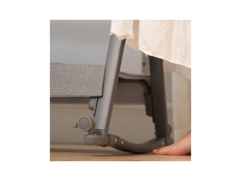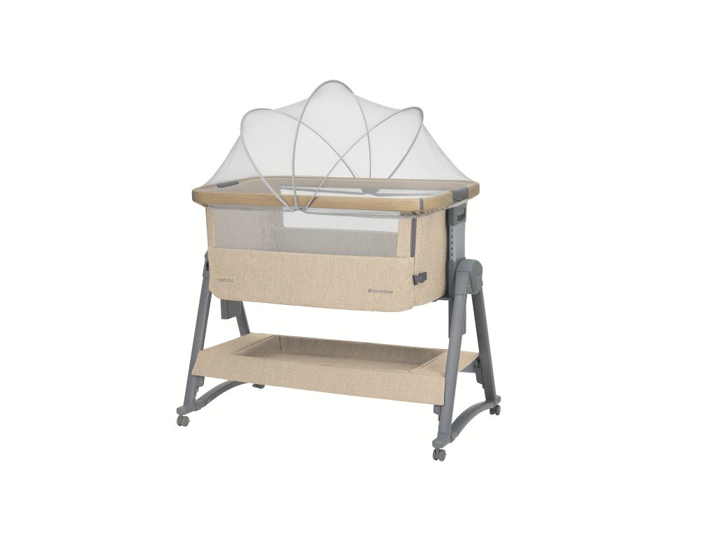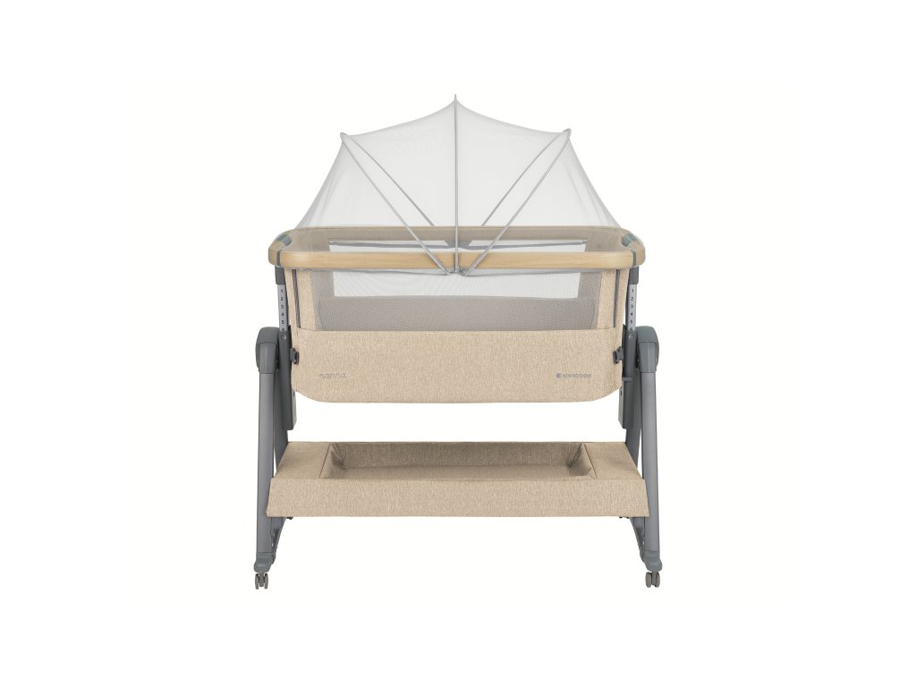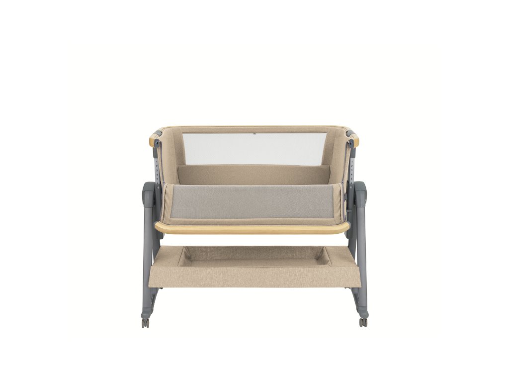 Postýlka KikkaBoo Nanna je praktická a stylová přístavná postýlka k rodičovské posteli, která vám umožní mít miminko bezpečně u sebe a dopřát si tak klidnější spánek. Díky spouštěcí přední straně máte dítě vždy snadno na dosah pro kojení, uklidnění i kontrolu bez nutnosti vstávat. Součástí je bezpečnostní popruh pro pevné připevnění k rodičovské posteli, takže postýlka drží stabilně na místě. Moderní konstrukce v kombinaci lehkého hliníku s povrchovou úpravou v dekoru dřeva skvěle zapadne do každé ložnice a potěší i při cestování.houpací lišty s možností zajištění (můžete houpat nebo pevně zafixovat)7 úrovní výškového nastavení, aby postýlka pasovala k různým typům postelíanti-reflux náklon, který pomáhá při potřebě mírně zvýšené polohysíťované panely pro lepší proudění čerstvého vzduchu pohodlná matracemoskytiéra pro ochranu před hmyzem4 kolečka s brzdami pro snadné přesouváníprotiskluzové nožky pro stabilituprostorný úložný koš na pleny a další potřeby pro dítěpřepravní taška vhodná na cesty i pro uskladněníRozměry: 48 × 100 × 69–81 cmHmotnost: 12,5 kgVýška matrace: 3 cmNosnost: 9 kgPostýlka je vhodná od narození do cca 6 měsíců (max. 9 kg).Doplňkové parametry