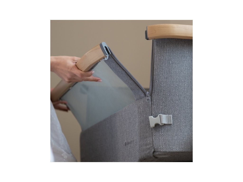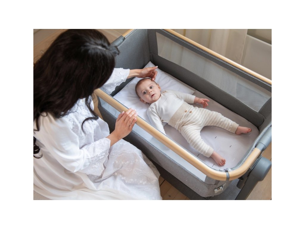 Postýlka KikkaBoo Nanna je praktická a stylová přístavná postýlka k rodičovské posteli, která vám umožní mít miminko bezpečně u sebe a dopřát si tak klidnější spánek. Díky spouštěcí přední straně máte dítě vždy snadno na dosah pro kojení, uklidnění i kontrolu bez nutnosti vstávat. Součástí je bezpečnostní popruh pro pevné připevnění k rodičovské posteli, takže postýlka drží stabilně na místě. Moderní konstrukce v kombinaci lehkého hliníku s povrchovou úpravou v dekoru dřeva skvěle zapadne do každé ložnice a potěší i při cestování.houpací lišty s možností zajištění (můžete houpat nebo pevně zafixovat)7 úrovní výškového nastavení, aby postýlka pasovala k různým typům postelíanti-reflux náklon, který pomáhá při potřebě mírně zvýšené polohysíťované panely pro lepší proudění čerstvého vzduchu pohodlná matracemoskytiéra pro ochranu před hmyzem4 kolečka s brzdami pro snadné přesouváníprotiskluzové nožky pro stabilituprostorný úložný koš na pleny a další potřeby pro dítěpřepravní taška vhodná na cesty i pro uskladněníRozměry: 48 × 100 × 69–81 cmHmotnost: 12,5 kgVýška matrace: 3 cmNosnost: 9 kgPostýlka je vhodná od narození do cca 6 měsíců (max. 9 kg).Doplňkové parametry