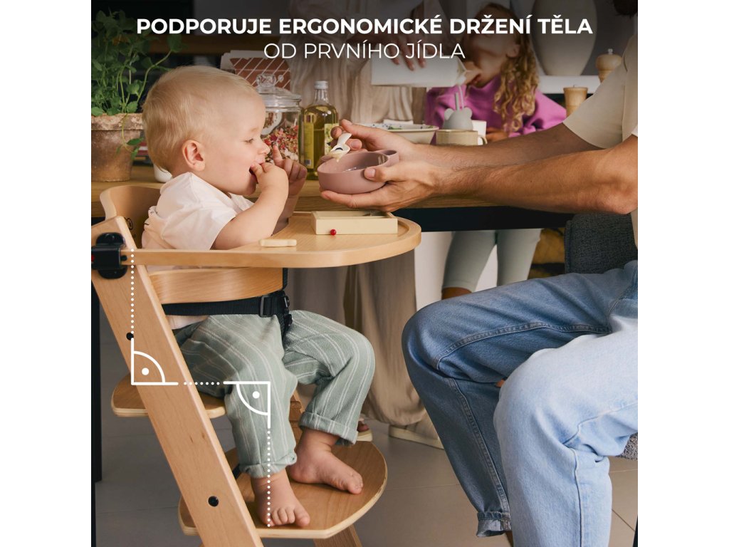 Existuje vůbec jídelní židlička, která bude sloužit vašemu dítěti několik let? Ano! Právě takovou židlí je ENOCK. Tento nadčasový kus nábytku je bezpečnou a praktickou vysokou jídelní židličkou i ergonomickou židlí pro starší děti. Jak je to možné? Výška sedáku a opěrky nohou je nastavitelná, což usnadňuje nastavení židle podle věku dítěte. ENOCK je navržena s ohledem na vaši rodinu - je to vysoká židle, která se bude hodit k interiéru vašeho domova a pak bude sloužit vašemu dítěti jako hrací židle nebo ke židle ke stolu. A co víc, můžete ji snadno přizpůsobit ke stolu v kuchyni, jídelně nebo v obývacím pokoji. Díky tvarovanému opěradlu bude dítě udržovat správné držení těla při jídle a bude také moci trávit čas společně s dospělými u stolu.