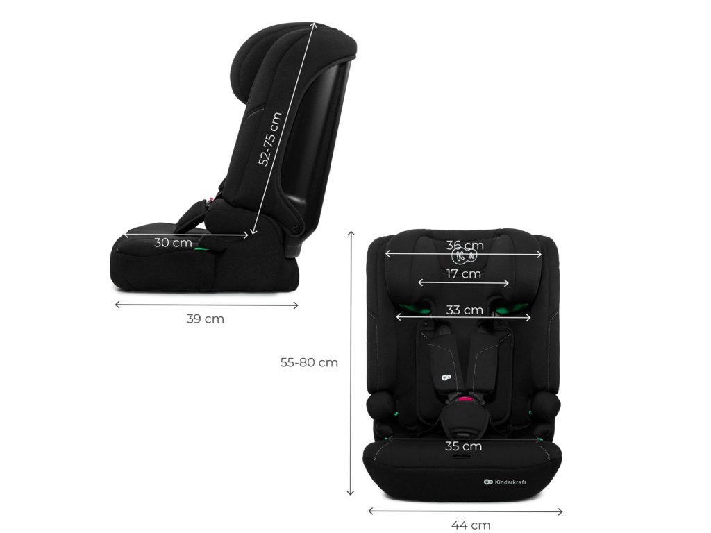 Kinderkraft I-COMFY je autosedačka 3 v 1, která roste spolu s vaším dítětem – určena pro děti od 76 do 150 cm (přibližně od 15 měsíců do 12 let). Splňuje přísnou normu ECE R129 i-Size, která zahrnuje také boční nárazové testy. Díky systému EASY GROW lze současně nastavit opěrku hlavy a pásy, což usnadňuje přizpůsobení sedačky výšce dítěte.