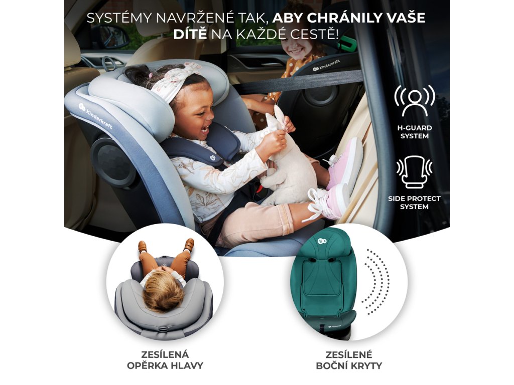 Autosedačka I-GROW je vybavena dvěma ochrannými systémy, které chrání dítě během jízdy: